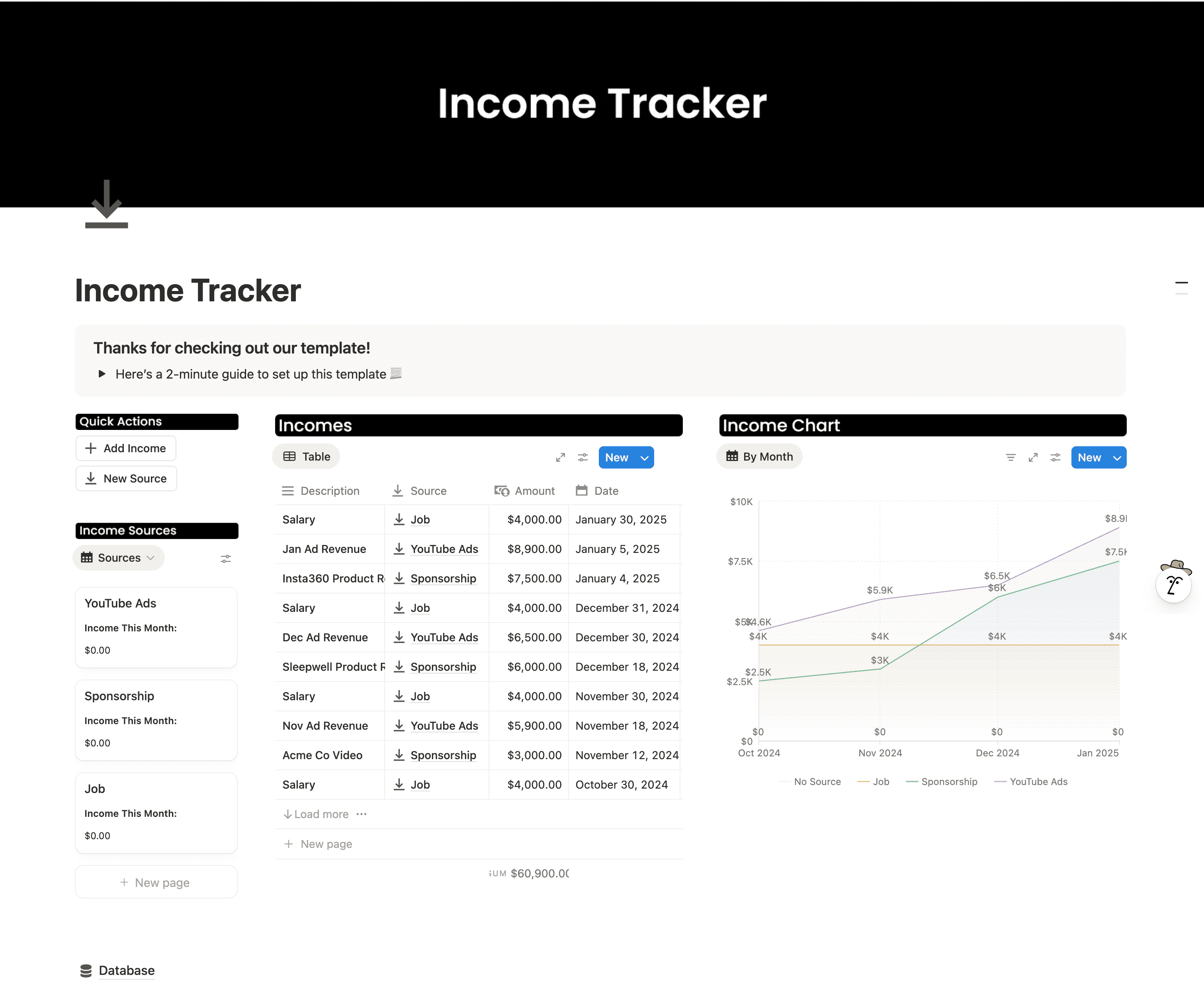 Track your income based on sources.