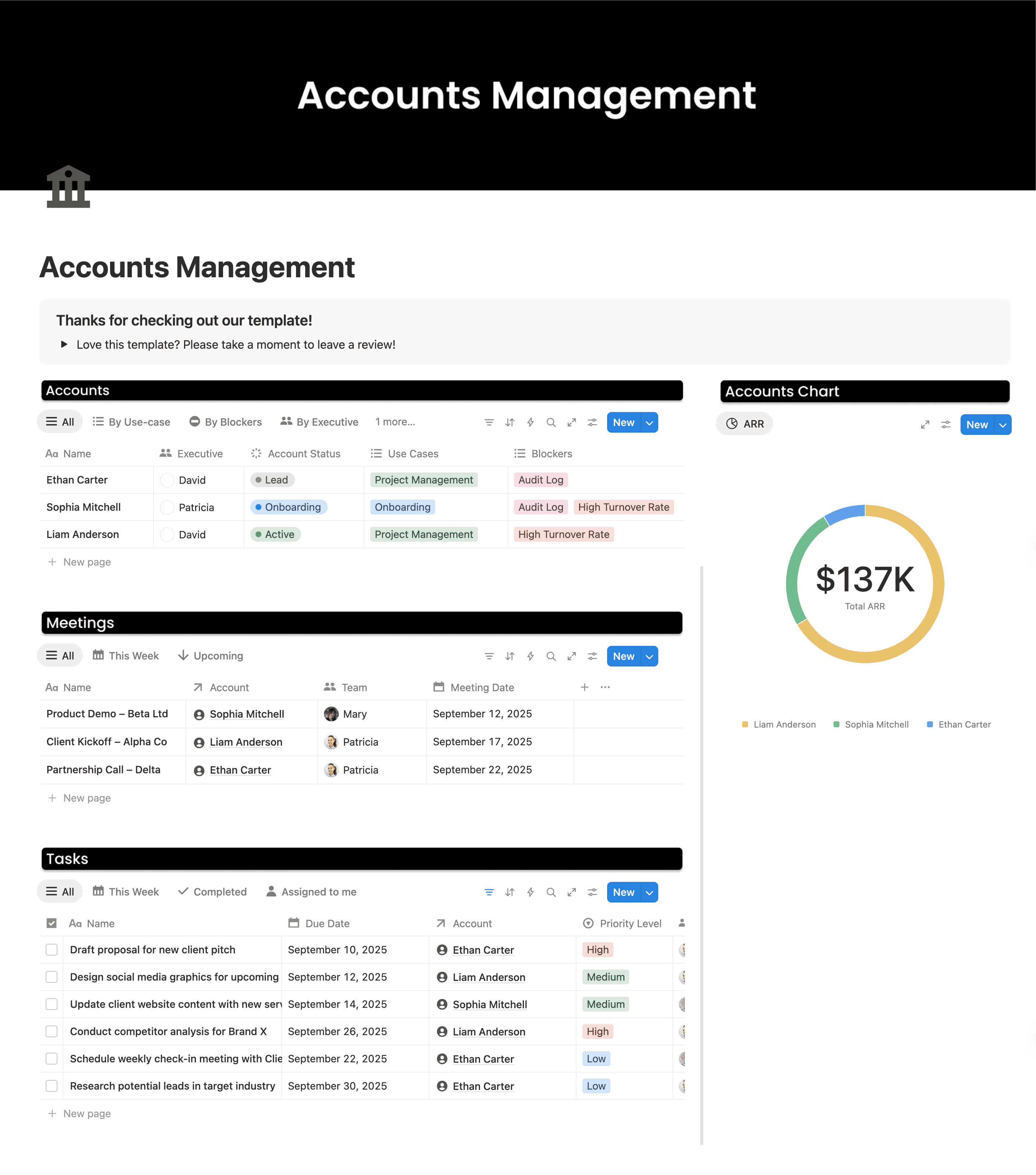 Manage accounts, meetings, and tasks in one template