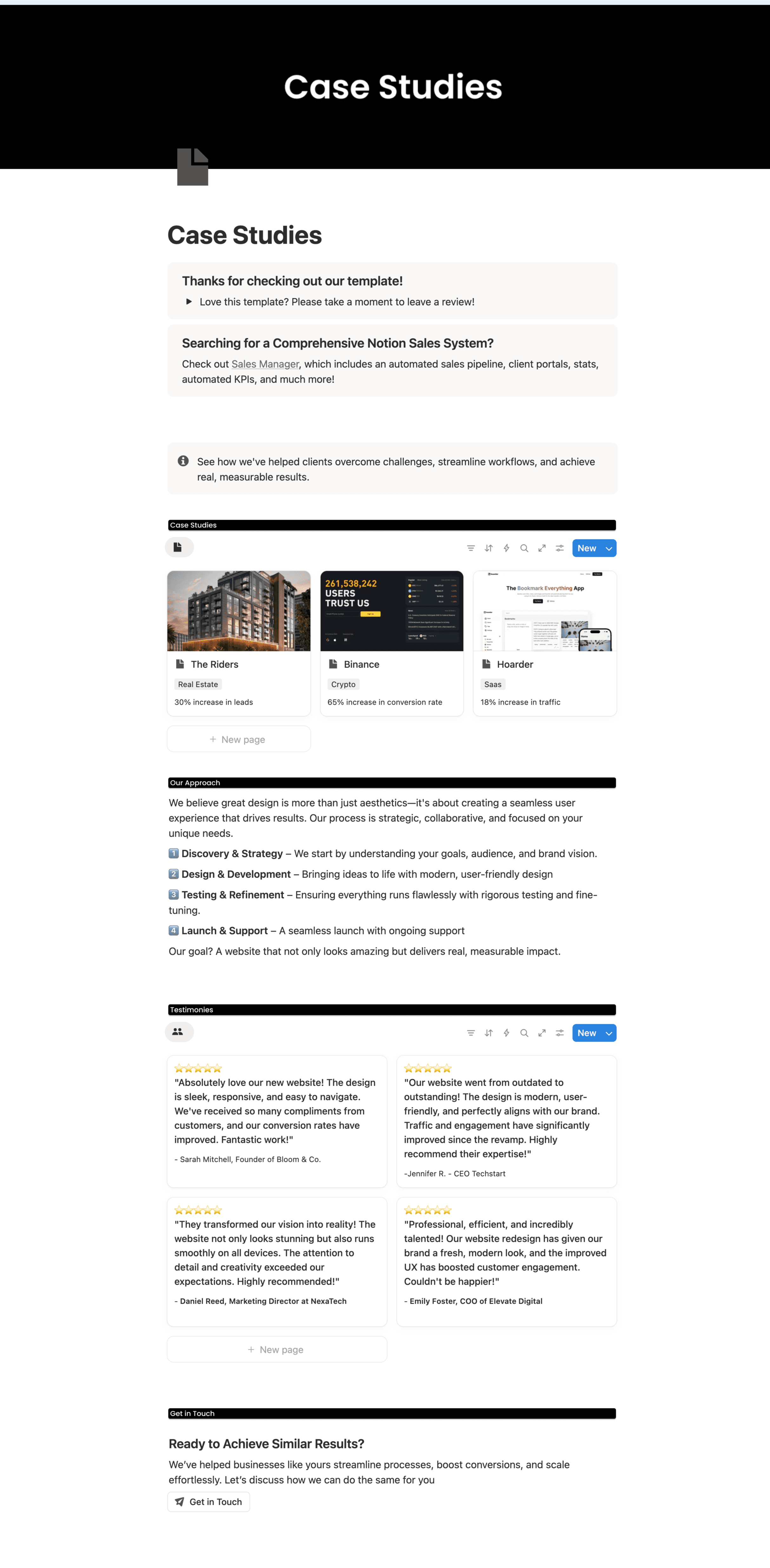 A simple case studies page in Notion.