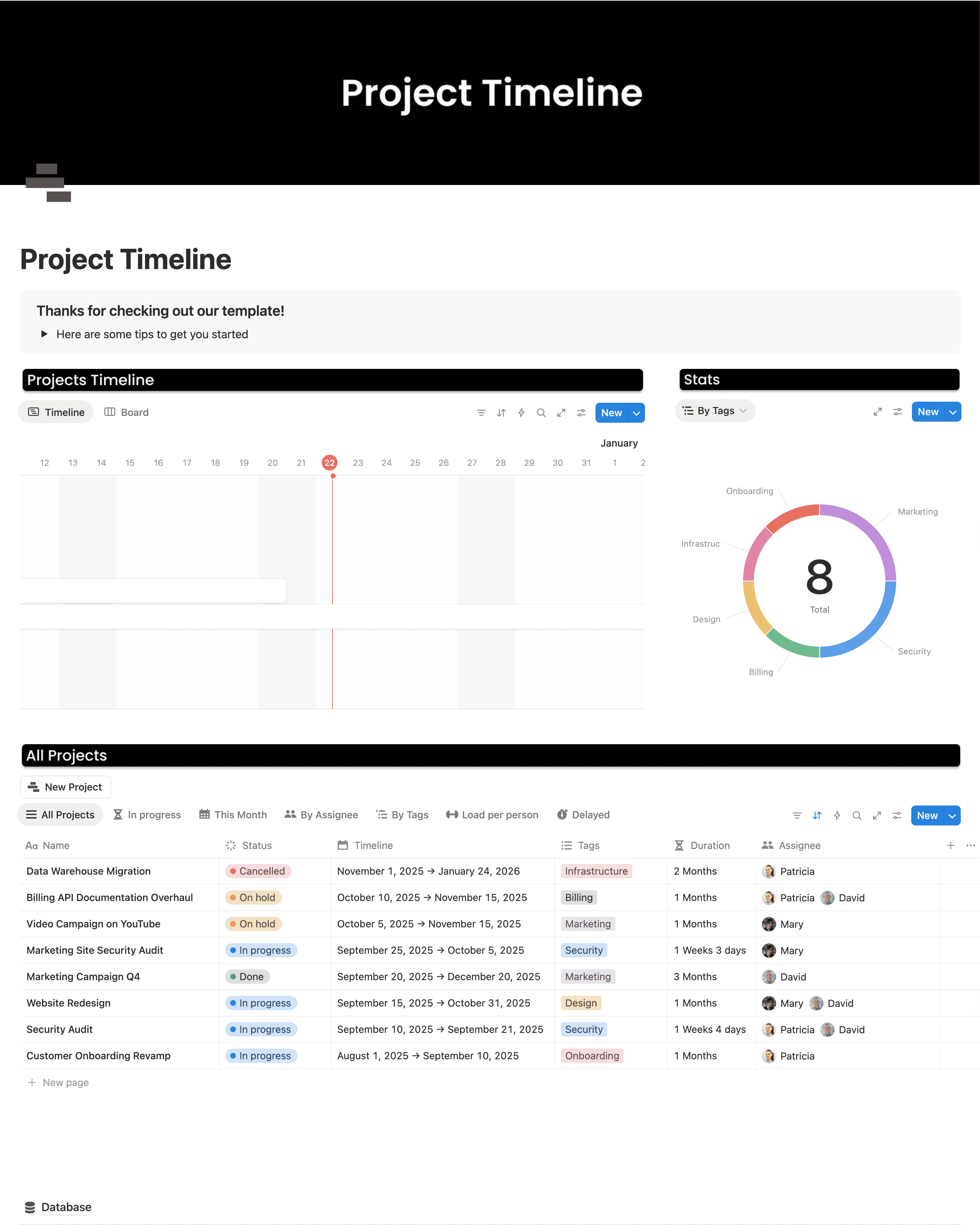 A simple template to manage project timelines.