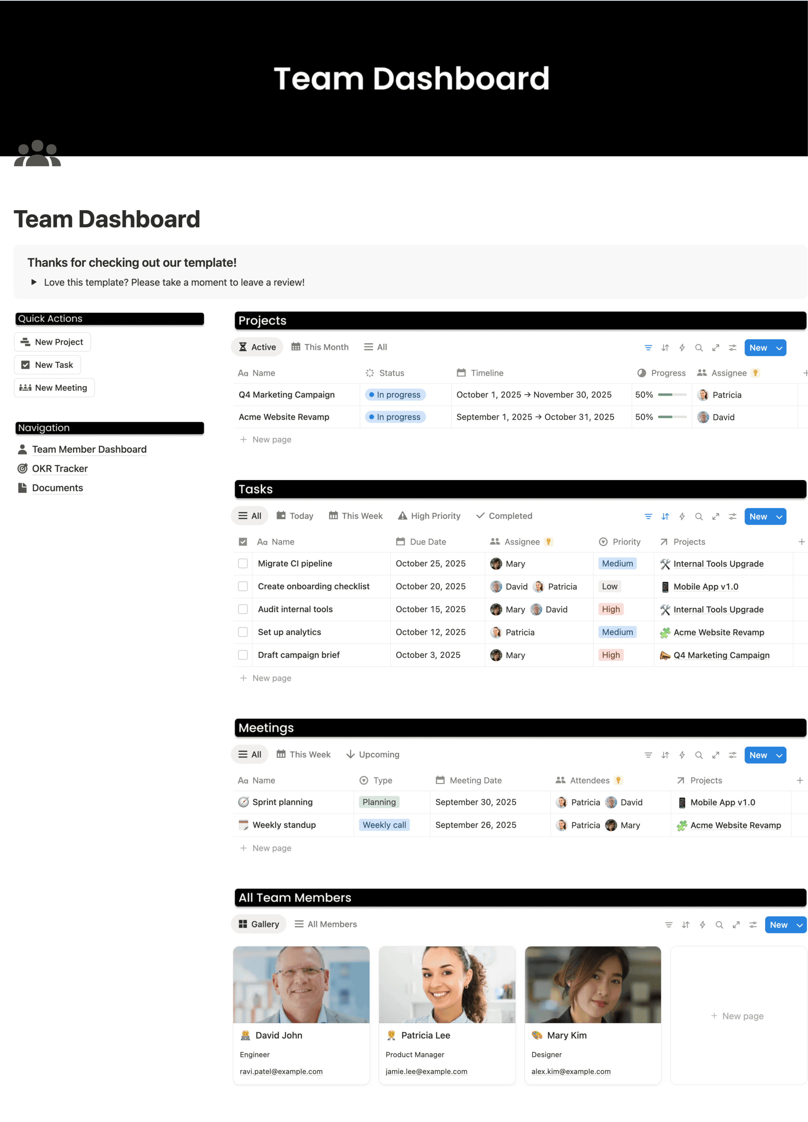 Manage documents, meetings, projects, and tasks with your team.