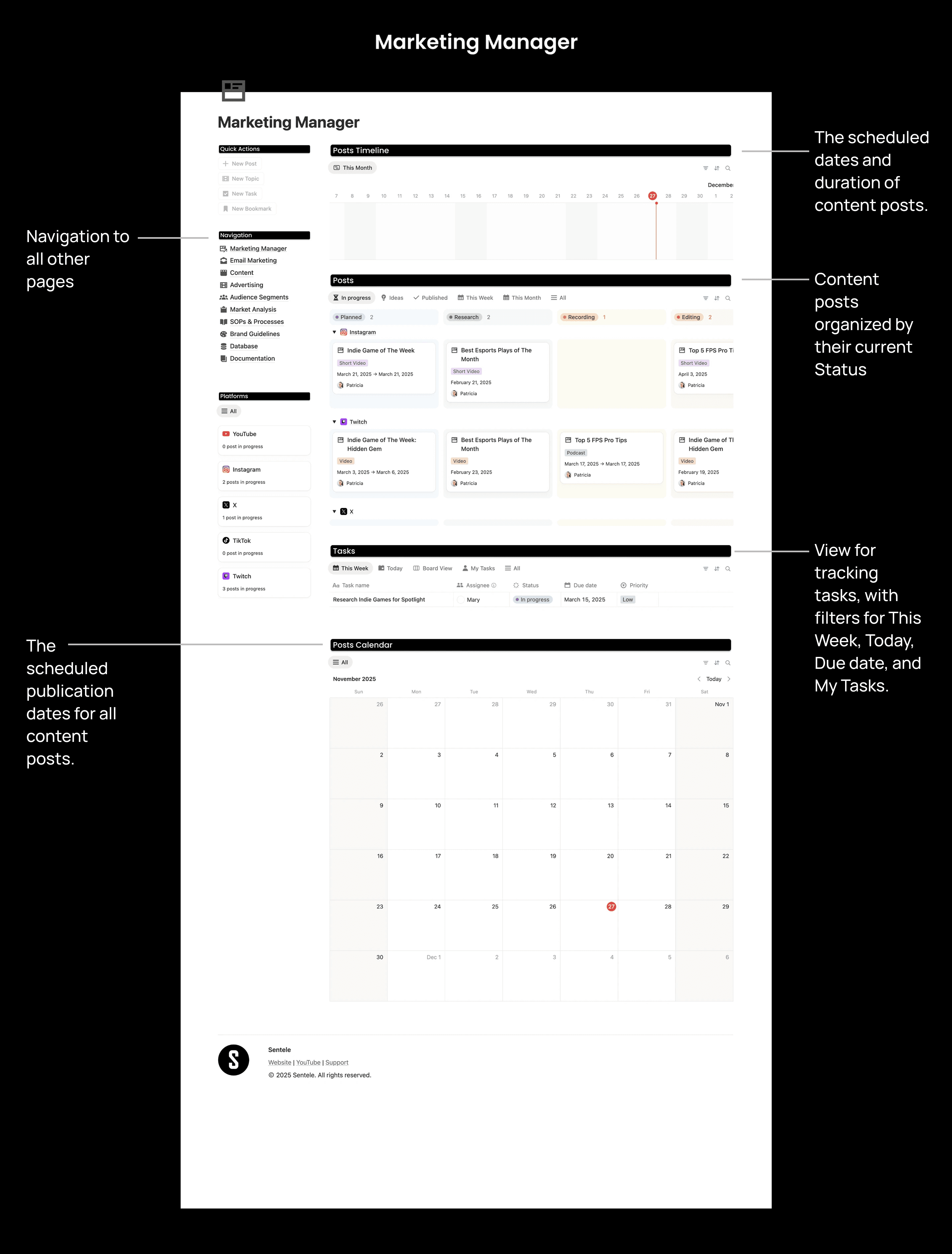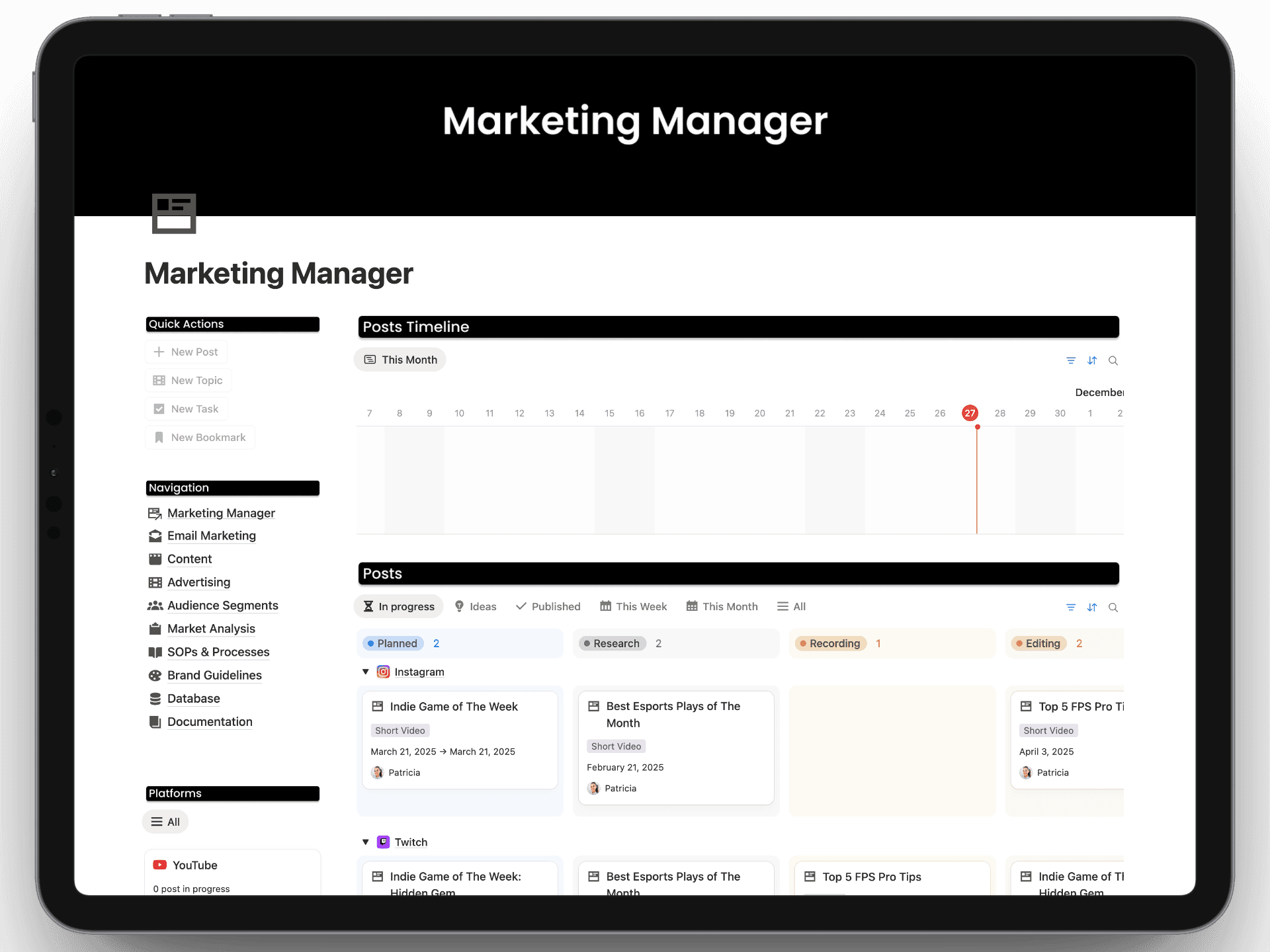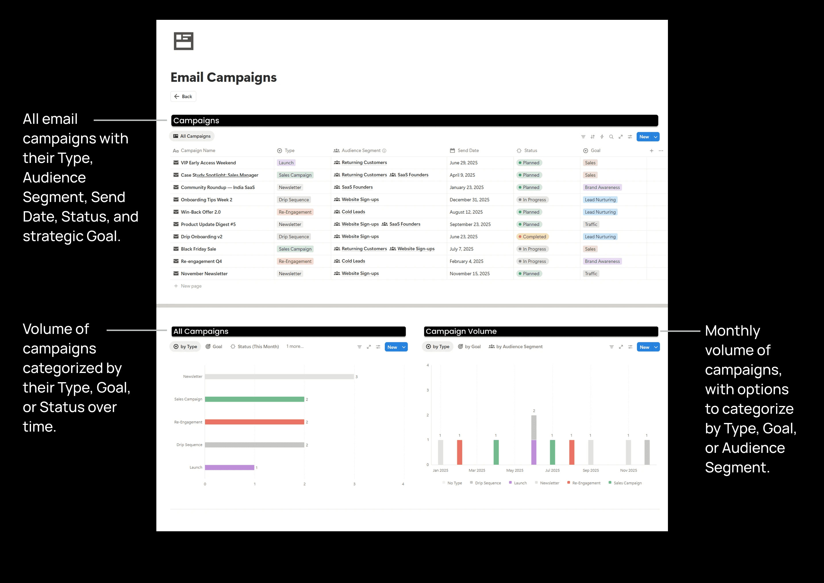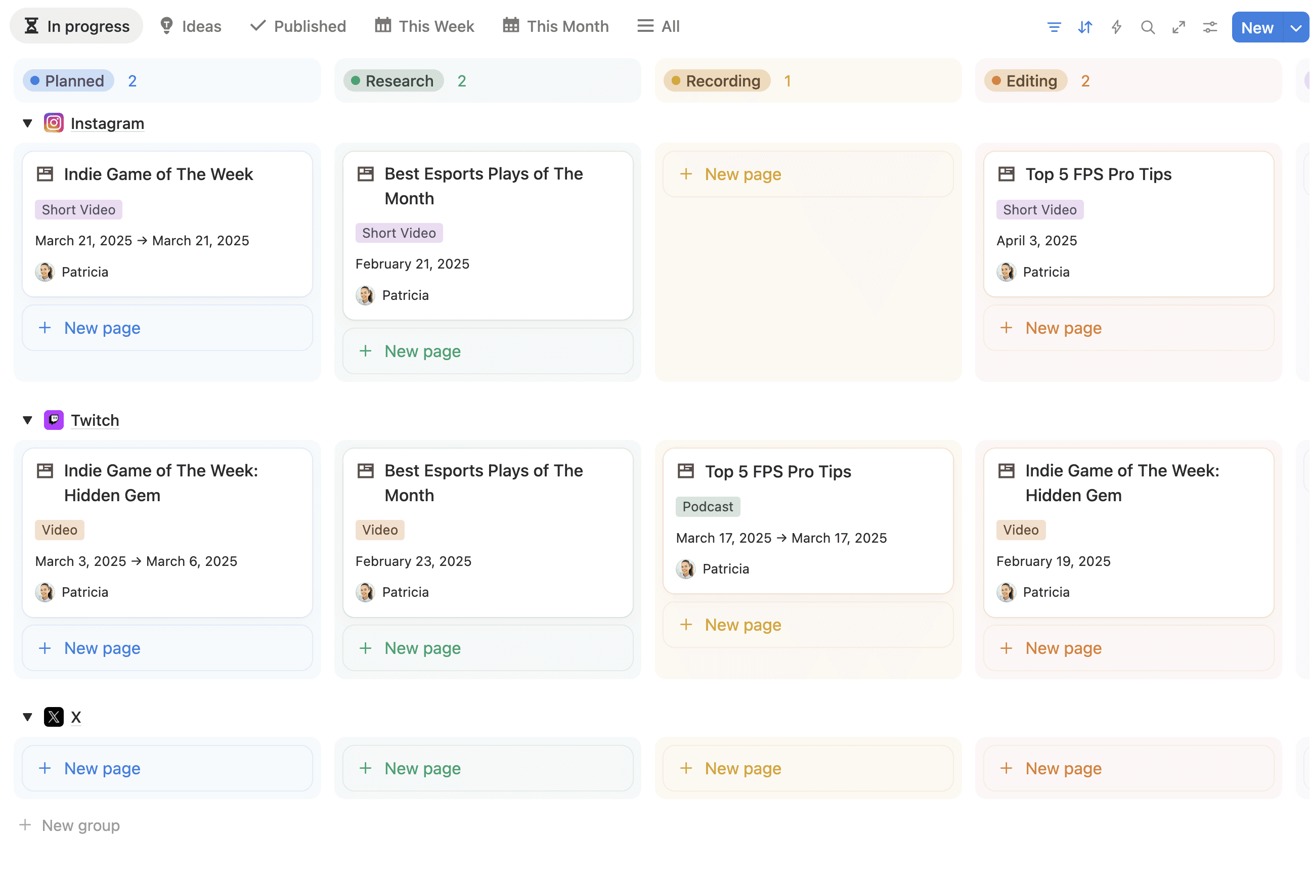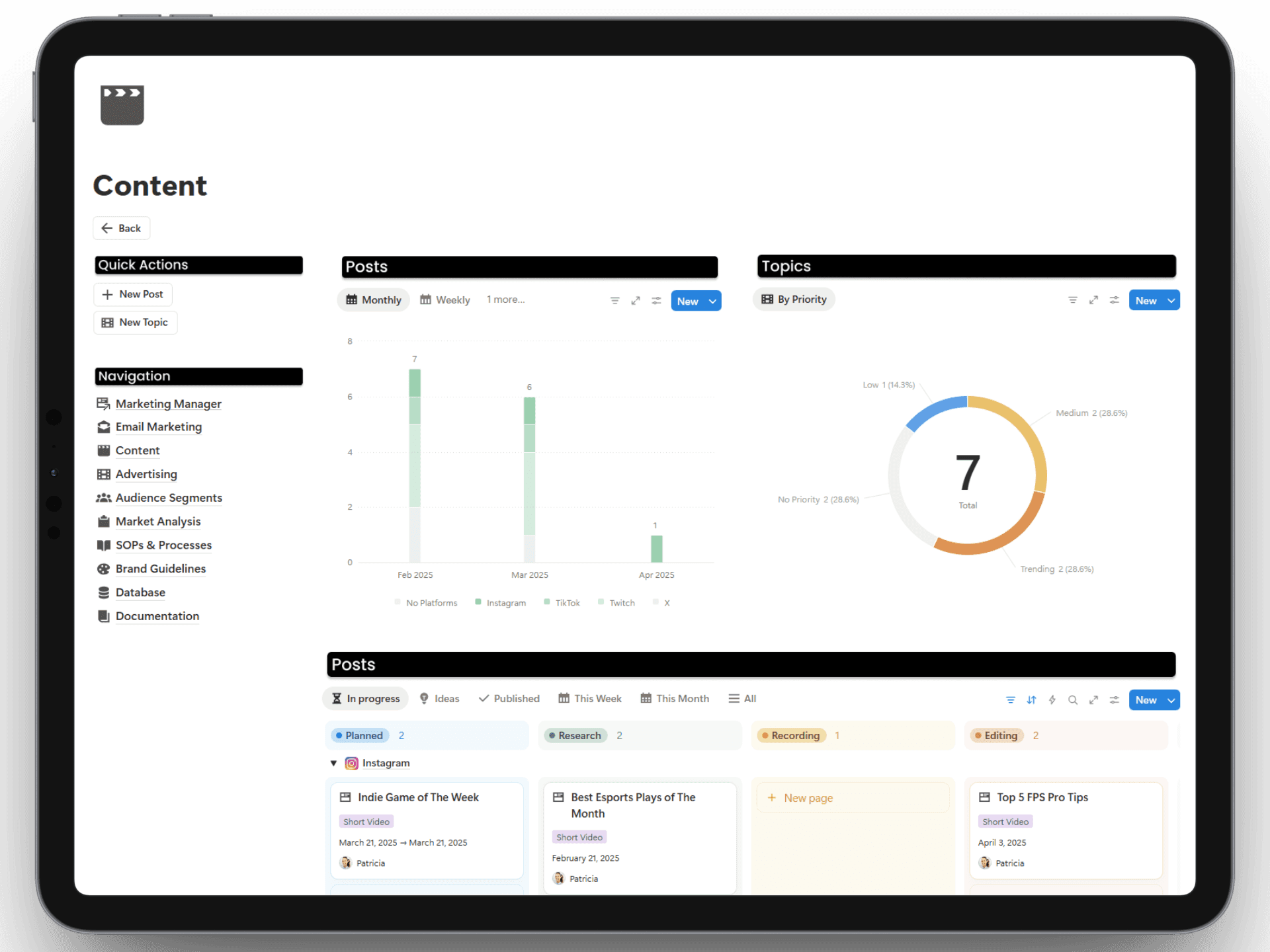 Track your content across multiple platforms. Segregate them by topic and audience segment.